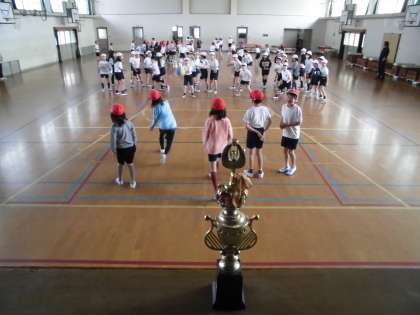 朝から学年で体育館に集まり,学年集会をしました。4年生での学習や「みさきの家」の話も聞きました。その後はレクリエーションで,クラス対抗のドッジボール大会をしました。これからも,学年対抗行事をたくさんしていきます。