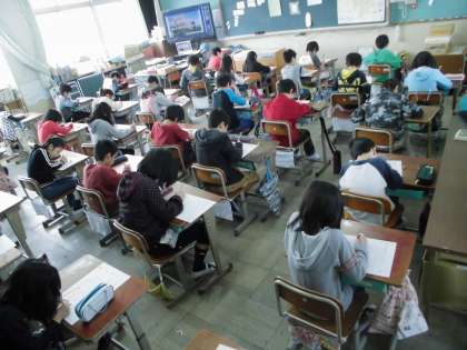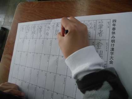 静かな雰囲気の中,黙々と漢字・計算大会に取り組んでいました。