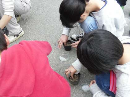 今週の水曜日に理科の学習でつかうじゃがいもとホウセンカの種を植えました。