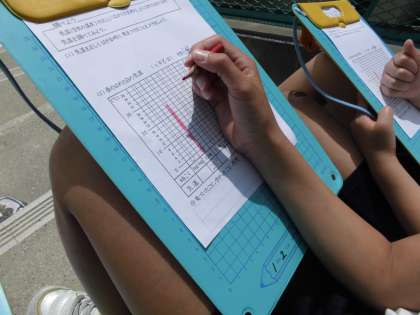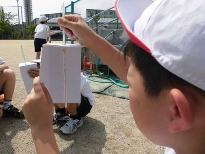 理科は天気と気温の学習をしています。今日は朝から1時間おきに気温をはかって記録しています。