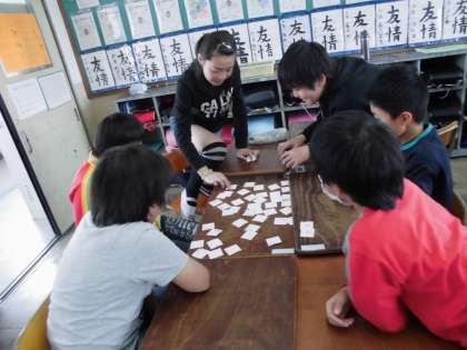 アルファベット早並べ競争、高跳び班対抗戦。