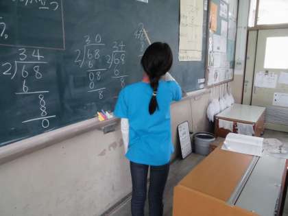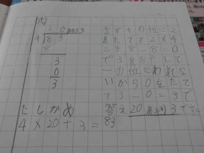 1けたでわるわり算の筆算の学習をがんばっています。この日の授業では,何人かの間違えや,わからないところから,学習が深まっていきました。間違いやわからない所を素直に出し合えるのは,素晴らしいことだと思います。これからも,みんなの学びのためにドンドン間違えて,みんなで深めていきましょう。
