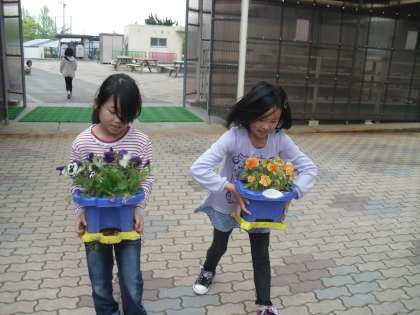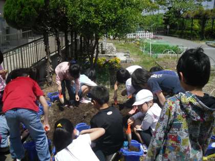 2年生のときにがんばって育ててきたパンジーはとてもきれいに咲きましたね。校庭の花だんに植えかえをしました。これからは,一人一鉢にほうせんかを育てていきます。種のまき方を学習して,たねまきをしました。これからどのように育っていくのかな?みんなのほうせんかがしっかり育ちますように…!水やりもがんばろうね。