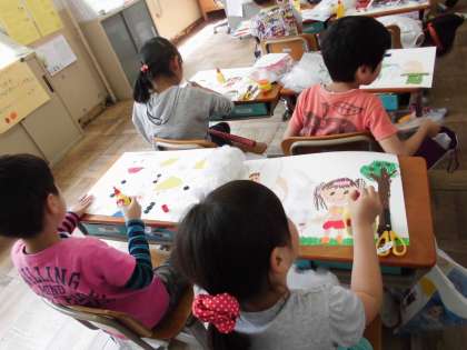 とても楽しそうに学習していました。どんな絵ができあがるか楽しみですね。