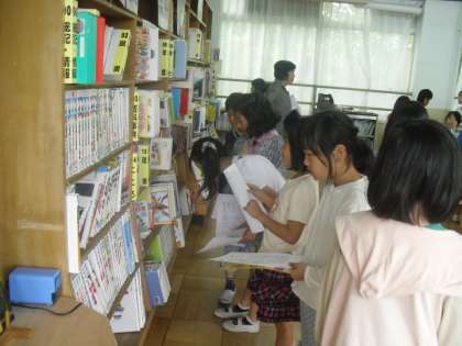 遠山先生に図書室オリエンテーションをしていただきました。本の分類についてくわしく教えてもらい,本のさがし方が分かりました。これからどんどん自分が読みたい本を図書室で見つけて借りてほしいと思います。