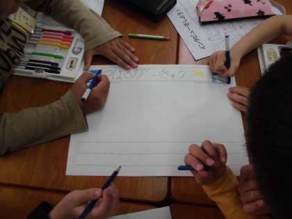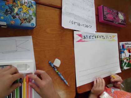 1年生との学校探検に向けて,各教室の看板作りをしています。