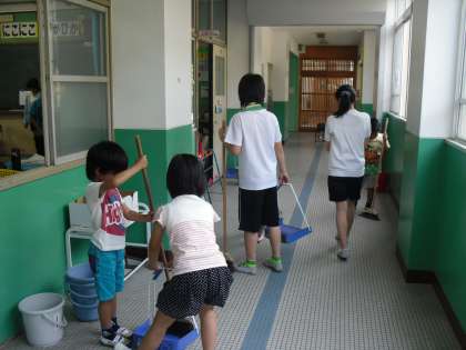 掃除時間には,やさしく1年生に教える姿が見られました。とても頼もしいです。