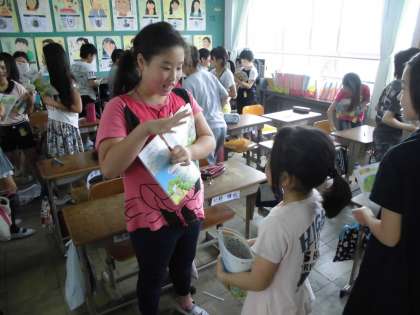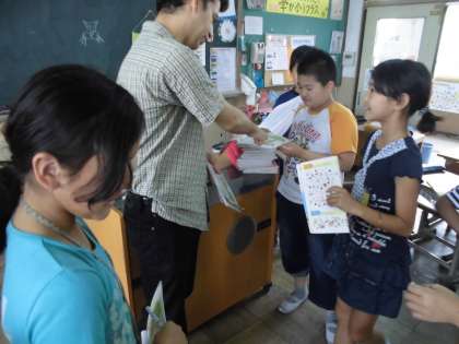 今日は,久しぶりにイシュマエル先生との授業。リンゴの絵をぬり,友達といくつぬったのか聞き合いました。できるだけたくさんの人に聞き回り,同じ数の人をさがしました。最後に,次の時間の準備を少しだけしました。次の学習は,「I like 〜」。好きなものを伝え合います。自分の好きなものが,英語で伝えられたらすてきですね。