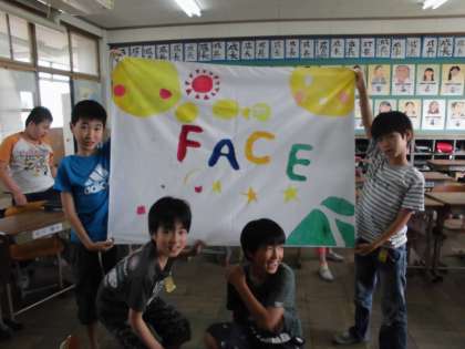 長期宿泊学習が,目前にせまってきました。各係ごとに準備も進めています。健康観察カードが作れた保健係に,学年の旗のアイデアを考えてもらい,ただ今作成中です。描くのは,やっぱり「FACE」。楽しくて,元気な5年生らしい旗ができそうです。