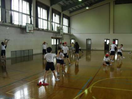 体育の学習で,倒立の練習をしました。秋の運動会では6年生は組体操をします。美しい倒立の姿勢をキープできるようにがんばっていきましょう。