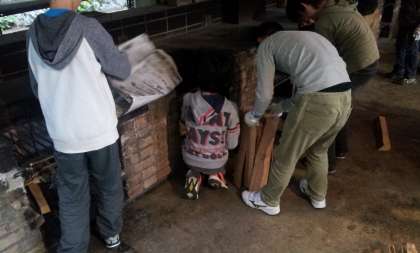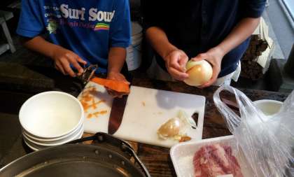 野外炊事をはじめました。みさきの家での経験をいかしながら、みんな頑張っています。
