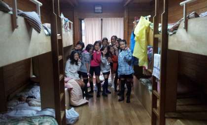 山の家の2日目。天気は曇りです。これから朝の集いにいきます。