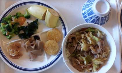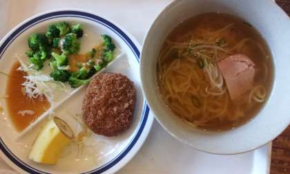 昼食はラーメンライスか焼肉丼のどちらかを選びます。圧倒的にラーメンが多かったです。