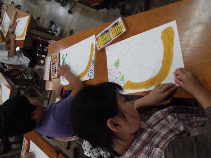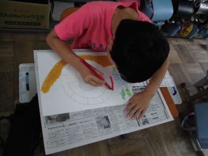 筆の使い方,パレットの使い方,筆洗の使い方など学習し,