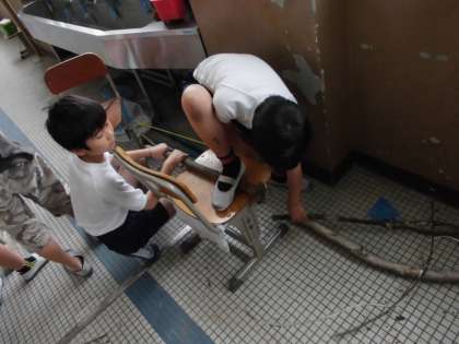 木を切ってつなげていきました。形が段々とできてきました。