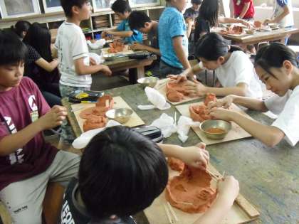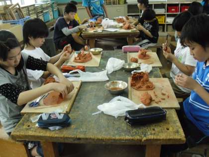 図工の学習で,粘土でたてあな住居を作りました。