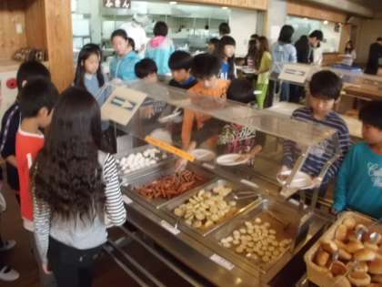 バイキング形式で好きな物をしっかり食べていました。