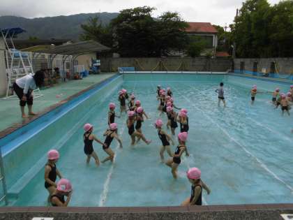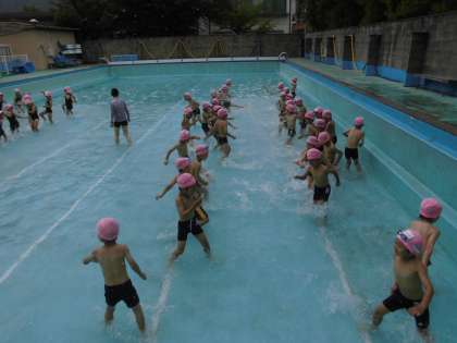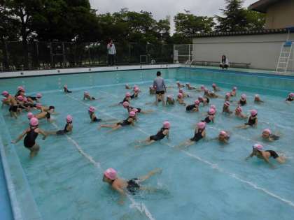 今日は初めての水なれでした。体感温度,水温は少し厳しかったですが,子どもたちはおおはしゃぎでした。水位はひざよりも下でしたが,わにさん歩きをしたり,水のかけあいをしたりして,水なれを楽しみました。少しずつ水位があがってきます。きまりを守ってがんばりましょう!