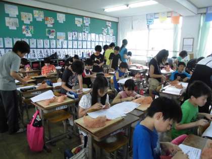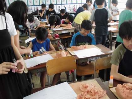 6年 「粘土で竪穴式住居」を鑑賞し合う