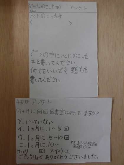 国語では「読書生活について考えよう」という学習をしています。昨日は読書生活について調査したい内容を決め,今日は調査するためのアンケートを作りました。