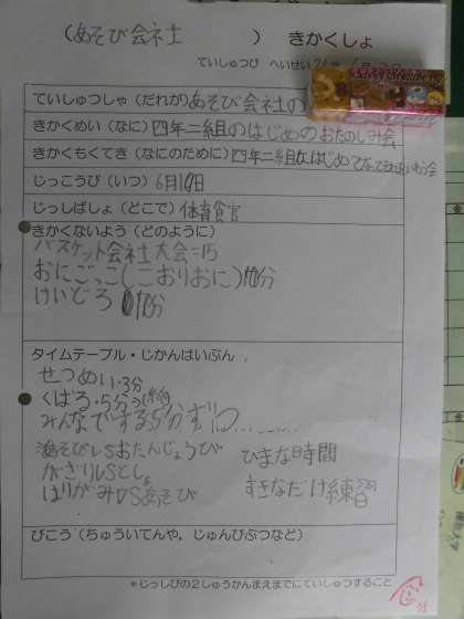 4年生になって初めてのお楽しみ会でした。今回は「あそび会社」さんの企画でした。企画をして,ルール説明にはパソコンのプレゼンテーションソフトを使い,運動場で実行しました。企画・準備・運営と,自分たちだけで上手にできたのは立派でした。