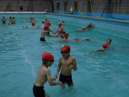 今日は準備運動、体慣らし(歩く→ロケットジャンプ→かるく泳ぐ)をした後、ねらい1でいろいろな水あそびを楽しみました。だるまうきやふしうき、くらげうき、大文字うきなど、うき方の練習もいろいろあります。水泳が苦手な子もいますが、いろいろな水遊びを通してもぐること・うくこと・泳ぐことに慣れていければと思います。これから水泳学習はバディを組んで練習をしていきます。お互いの体調管理・安全確認はもちろん、互いにアドバイスをたくさんしながら上達していきたいですね。