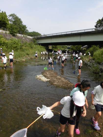 学年で小畑川の調査へいきました。川の中には小さな魚がいました。そして,今日はホタルも見つけました。