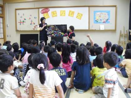 夢ぽけっとお話し会がありました。大型絵本の読み聞かせや,ブックトークをしていただきました。早速ブックトークで紹介された本を「読みたい。」と言っている声が聞こえてきました。夏休みにはたくさん本を読んでください。