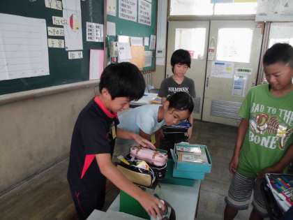 受精卵から38週目までの胎児の成長を学習しました。はじめ、直径0.1mmの受精卵が、生まれる少し前には、身長50cm、体重3000gに成長することを知り、グラフに表しました。そして、身長は定規を見ながら大きさを実感し、体重は、生まれる直前の3000gを身の回りにあるもので予想してみました。本をたくさん積み重ねたり、バケツに水を入れたり・・。はかりで計測すると、ほとんどが3000gに至りませんでした。そして、同じ重さの赤ちゃん人形を抱き、「おもっ!」・・お母さんの子宮にはこんなにも大きな赤ちゃんとそして、たいばん、羊水があることを知り、改めて新しい生命の誕生の大変さを知りました。