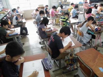 静かな雰囲気の中,漢字・算数大会に挑みました。夏休みの勉強の成果を出し切れたと思います。
