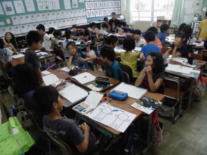 理科では新しい学習に入りました。「わたしたちの体と運動」では,自分の頭・背中・腕・足などを触って,骨のあるところと無いところを調べてまとめました。