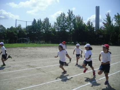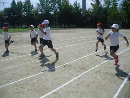 80m走の練習では,本番の走順どおりセパレートコースを走りました。