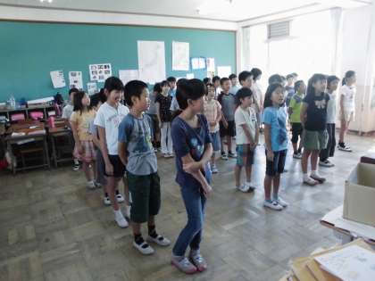 いよいよ明日にみさきの家へ行きます。今日は各クラスともに,それぞれキャンプファイヤーの出し物の練習をしました。