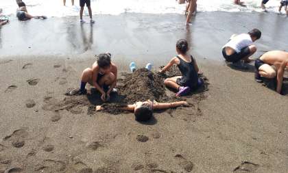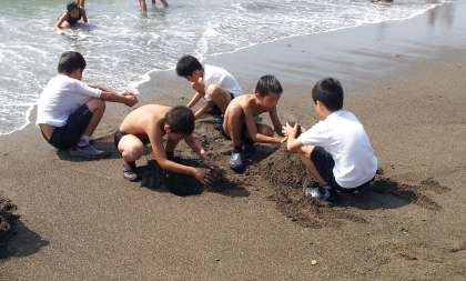 波だけでなく、砂で遊ぶ子どもたちも増えてきました。