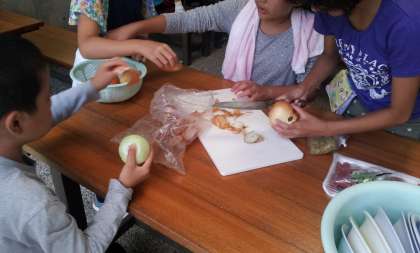 野外炊飯の時間になりました。係ごとに準備をはじめました。