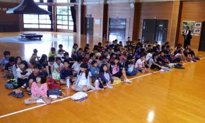 9時からホールで退所式を行いました。みさきの家での活動はこれで終わりです。これから、鳥羽水族館に行きます。