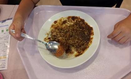 セルフで好きな品を選びます。圧倒的にラーメンセットが多かったです。