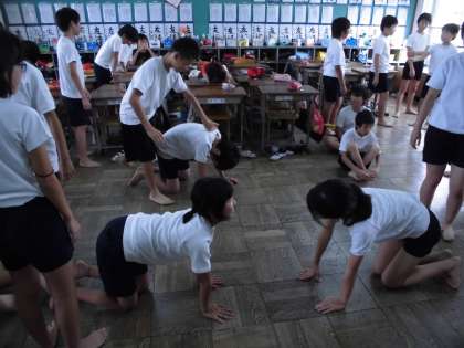 組体操の台本も出来上がり,少しずつ技も人数を増やしています。