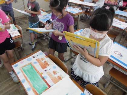 友だちの作品の真似してみたいところなどを見つけている子どももいました。