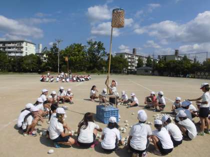 この競技は運動会本番に、たてわりグループで行うものです。
