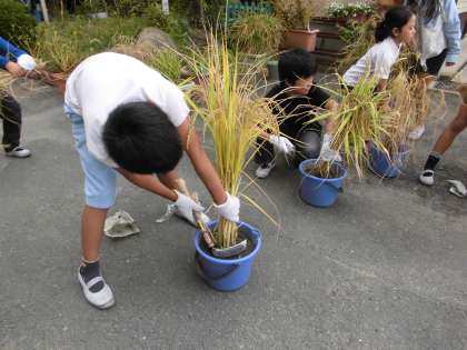 5月から育ててきた稲が,ようやく収穫の時期を迎えました。夏を無事に越して大きく成長したものもたくさんあります。MYライスを収穫できて喜ぶ子どもたち。お米をどのように食すのか,これから考えていきたいと思います。