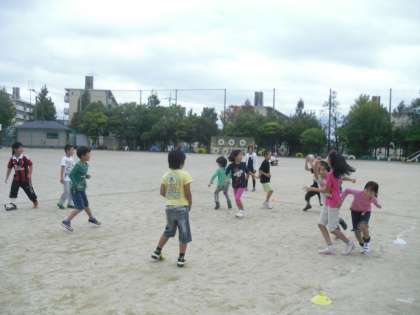 しっかり勉強をした後に,思いきり遊ぶのは気持ちがいいです。この写真はみんな遊びでドッジボールをしたときの様子です。王様ドッジやボール2こドッジもしてみました。ボールの勢いが強くて「こわい」と感じる人がいたときに,守ってあげる姿や,力を緩めてあげる姿,ボールを譲ってあげる姿が見られました。とても優しかったです。そして,今日は特別ルール。男子は利き手と反対の手でボールを投げました。なかなか難しそうでしたが,みんなで仲良く遊べました。後期もしっかりと勉強をして,みんなでたくさん遊びましょう!!