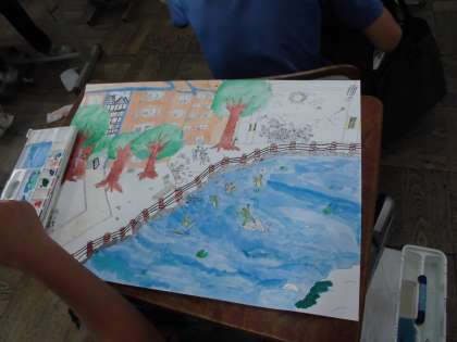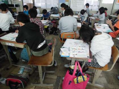6年生は運動会が終わってからあわててお話の絵に取り掛かっています。