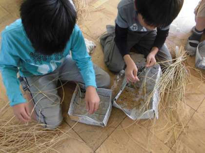次は、もみ殻を取り、家庭科の授業でご飯を炊きます。