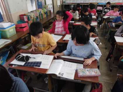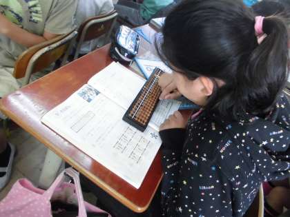 今日はそろばんの学習をしました。3年生のときとは違い,そろばんで小数や大きな数の計算をしました。久しぶりにそろばんにみんな楽しんでいました。