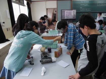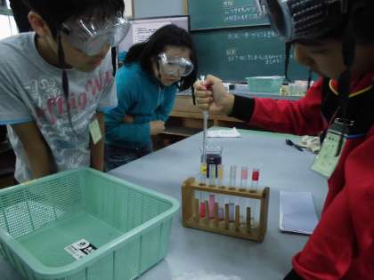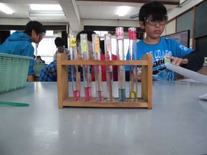 今日はリトマス紙ではなくムラサキキャベツを使って水溶液の性質を調べました。