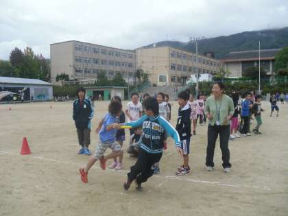 全力で走り切る姿が皆とてもかっこよかったです。後半の追い上げのシーンでは,「おおっ!」と歓声があがりました。リレー大会とても楽しかったです。またしましょうね!!