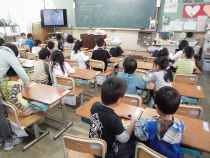 今日の算数は「かたちづくり」です。三角の色板を使って,家や船などの形を作っていきます。ただし,好きな枚数を使うのではなく見本を見て同じ枚数,同じ形を作ります。「んー,むずかしい・・・。」と悪戦苦闘する子たちですが,二人組で力を合わせて考えた結果「あっ!わかった!やったー。できた。」とすごくすっきりとした表情の子どもたち。次の時間はどんな形を作るのでしょうね。