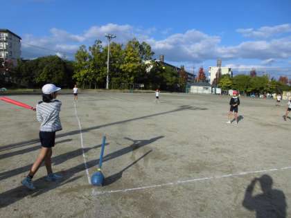体育は,ベースボール型ゲームの学習を始めました。昔とちがって,野球に慣れている子はごく少数なので,できるかな?と思いましたが,みんな楽しんで活動できました。まずはキャッチボール,そしてゲーム形式の練習をしました。打つのは意外と難しかったのですが,投げたり取ったりは上手にできていました。そして,何より,よく走りました。これからルールなどを整理して,さらに楽しい活動にできたらと思います。