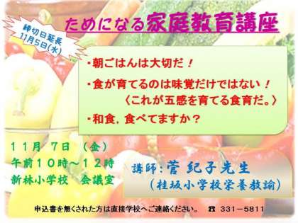 家庭教育講座の〆切を11月5日(水)まで延長します。